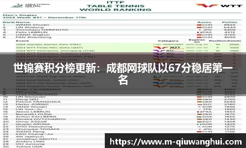 世锦赛积分榜更新:成都网球队以67分稳居第一名